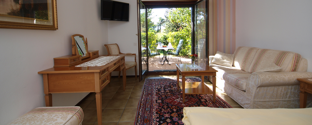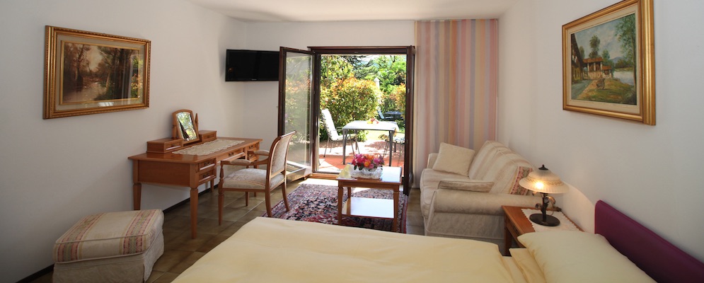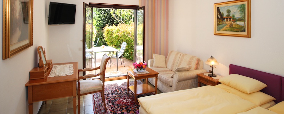 | immerse nel verde le nostre camere permettono di godersi a pieno la tranquillità e pace. Situate in posizione soleggiata a sud con splendida vista dispongono giardino privato con tavolo e sedie, entrata separata, angolo salotto con divano, scrivania, sala da bagno con doccia-WC, asciugacapelli, radio, TV LCD, Internet wifi gratuito, telefono, cassaforte, minibar, macchina da caffè Nespresso. Camere con facilitazioni per disabili. |